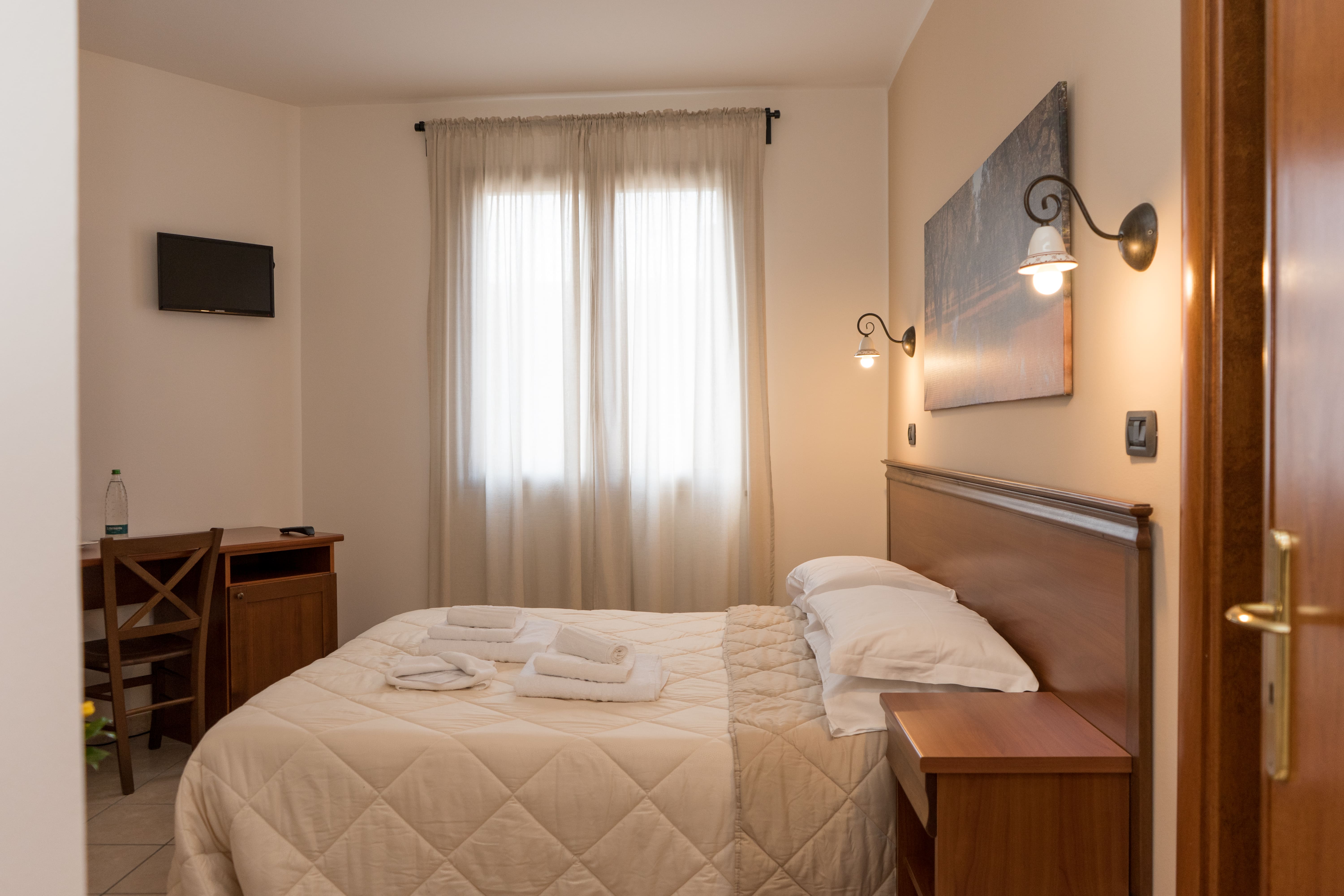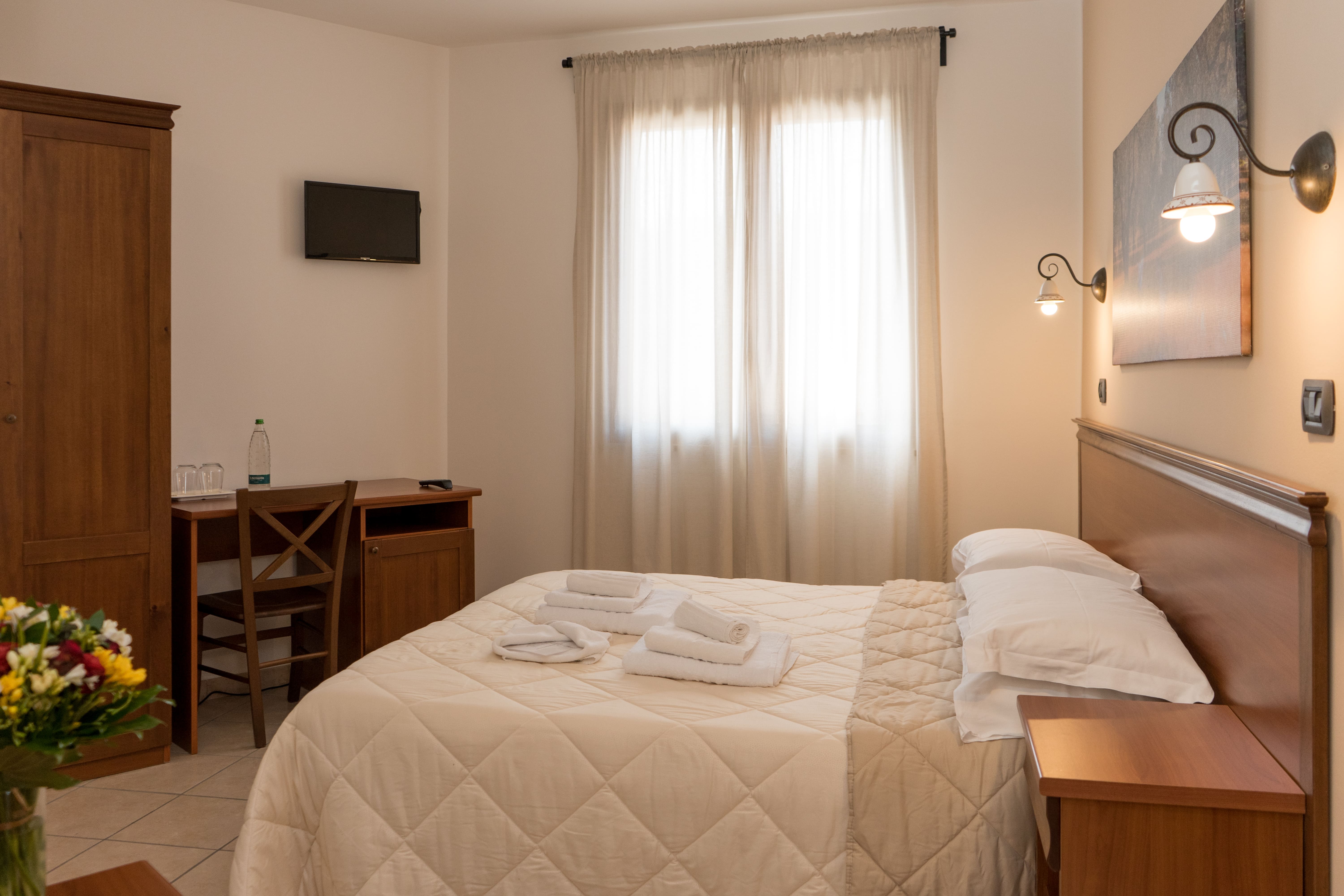 Camera di 16mq, disponibile con letto matrimoniale o con due letti singoli, dotata di tutti i comfort per un piacevole soggiorno.br /Su richiesta può ospitare una culla.br /br /16mqbr /Bagno privatobr /Colazione inclusa